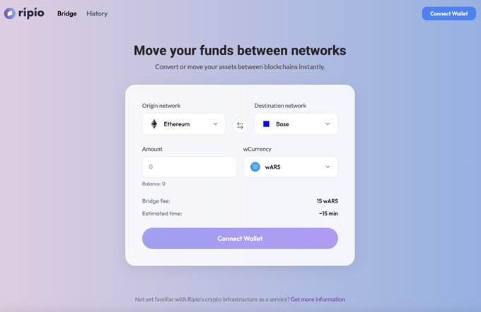 THIS is the kind of stablecoin Argentina needed! 🇦🇷💪 $wARS from @RipioApp: 1:1 peg to the Argentine peso, but on-chain on Ethereum, Base, and World Chain. The best part: 🔥 Easily buy it on Ripio (CEX) with direct ARS. 🔥 Or swap it on DEXs across different networks. 🔥 And now with an official bridge to move it between chains seamlessly 🚀 The result? Total access: use it with CEX if you want simplicity, or full DeFi if you're a purist. No one gets left out. twitter.com/diego_defi/status/...