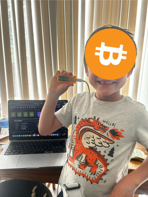 HOLY SATS! My 7yo scored $20 from the Tooth Fairy, hitting $90 in savings! Then he BLEW MY MIND: 'Dad, I’m ALL IN on BITCOIN!' 😱 HIS idea! We got a Jade + Green Wallet from Blockstream, he wrote his seed phrase like a BOSS, & I sold him sats for cash (No KYC, lol). Pure 🔥🧡!