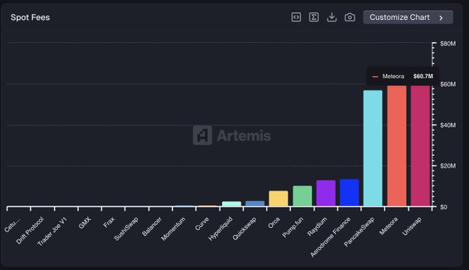 $MET continues to be a top fee generating protocol. #2 only to Uniswap among DEXs for Spot Fees at $60m month to date. Congrats @MeteoraAG team. twitter.com/jonbma/status/1981...