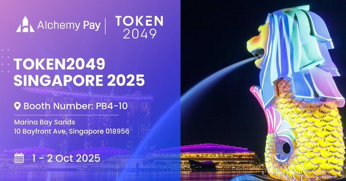 🎉 Hype is real for TOKEN2049 Singapore 2025! 🇸🇬 Visit #AlchemyPay at Booth PB4-10, Marina Bay Sands, Oct 1-2, to explore our latest #cryptopayment solutions and #RWA Platform! Let’s shape the future together! 💥 $ACH #TOKEN2049