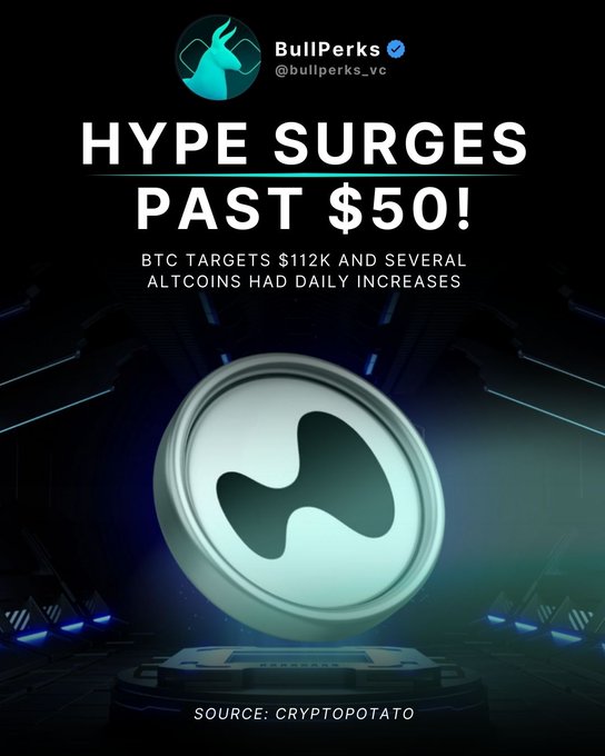Bulls, the charge is on! $HYPE shoots past $50, $BTC is charging toward $112K, and altcoins like $DOGE are up 7%. Let’s ride this wave together! 📈 #cryptocurrencies #bitcoin #altcoins #bullrun #marketwatch