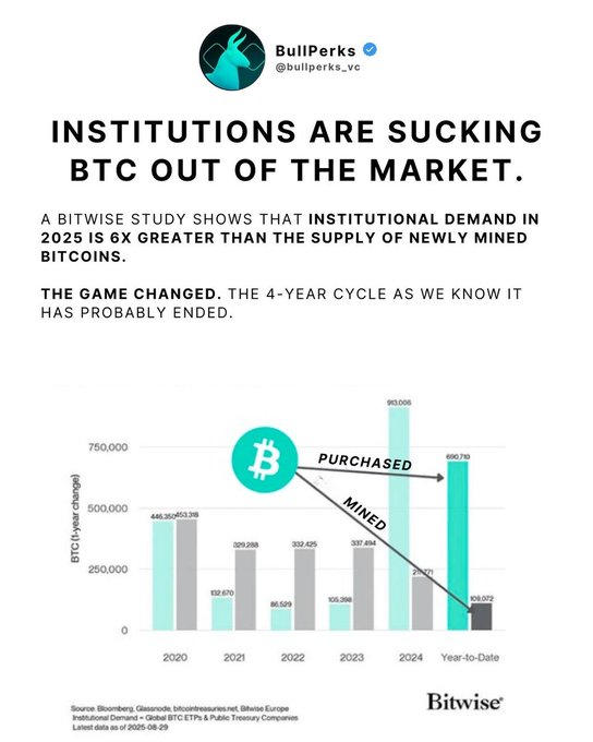 According to a @Bitwise study, institutional demand for Bitcoin is skyrocketing. Yes, there are other supply factors, like investors—including whales—selling $BTC, just as there are other buyers beyond institutions. #cryptocurrencies #investments #financialmarket #finance