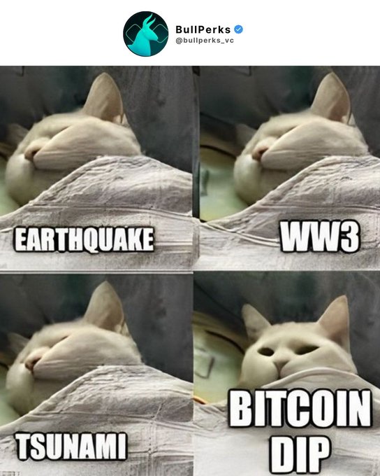 Earthquake? Still vibin’, no cap. Been there!... WW3? Just another Tuesday, lol. Tsunami? 😴Bitcoin dip tho? WAKE UP! 😂#cryptomeme