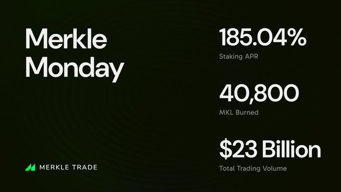 Kicking off the week with strong numbers at Merkle: 1. Staking APR up to 185%, more revenue shared 2. 40,800 MKL burned in 2 seasons, rising traders' demand with token deflation 3. $23B total trading volume, and still climbing Merkle on the move!