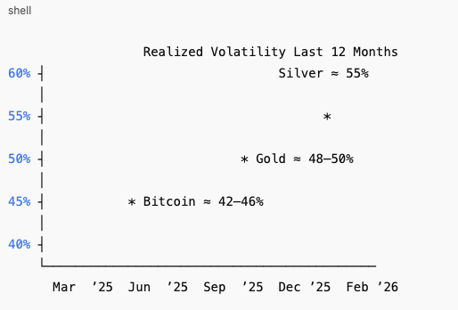 Bitcoin's biggest drawback as store of value used to be that it was highly volatile. Interestingly, in the last 1 year, gold and silver have become more volatile than Bitcoin. We are living in unprecedented times for sure.