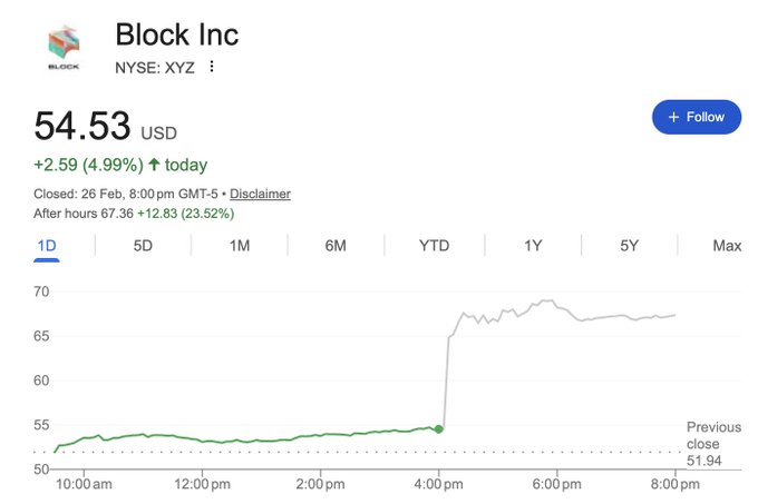 Founder-led tech companies are about to separate from the pack in a way nobody's pricing in. @jack cuts 40% of the workforce. Stock jumps 25% after hours. That's not luck. That's a founder who doesn't need consensus to move. Non-founder CEOs will spend 6 months getting committee approval for a 10% reduction. By then, the window's closed. Short term: insane operating leverage. Long term: the demand question matters — but the companies that restructured early will have the margin buffer to survive it. The gap between founder-led and consensus-led is about to become the most important variable in tech investing. Not a stock advice.