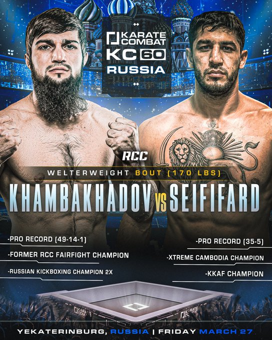 Champions Collide! We're rocking the Welterweight Division at KC60 with a huge matchup between Saifullakh Khambakhadov and Morteza Seififard! KC60 | RUSSIA | FRI MARCH 27