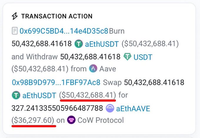 If you’re having a bad day, remember… it could always get worse. Today, a trader accidentally swapped $50,000,000 $USDT for just $36,000 worth of $AAVE through the Aave interface.