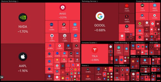 🩸JUST IN: $1,300,000,000,000 has been wiped out from the US stock market today.