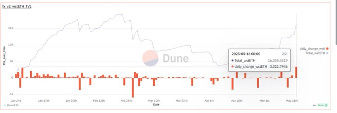 There is 3.3k $wstETH added to $wstETH leverage position for today . New high for daily net inflow for $wstETH leverage position in the history. @protocol_fx