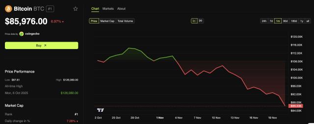 Quantum Dump : Bitcoin Falls to $86,000 and Wipes Out $220 Million in Long Positions