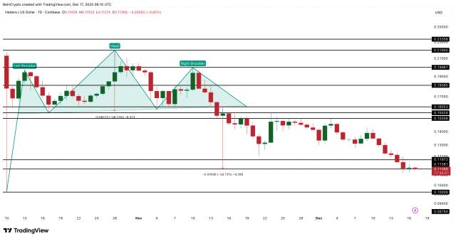 HBAR price hits downside target — immediate recovery or a further 16% drop?