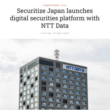 🔥Securitize is expanding their RWA presence into Japan! They're starting off hot with a partnership with NTT Data for a digital securities platform. And as we know... NTT has also partnered with $INJ recently and Injective's been tokenizing RWAs nonstop since! Both NTT Data &