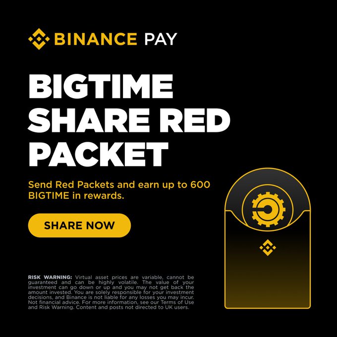 Share red packets and win up to 600 @playbigtime BIGTIME in rewards. More information 👉 app.binance.com/pay-activity/s...…