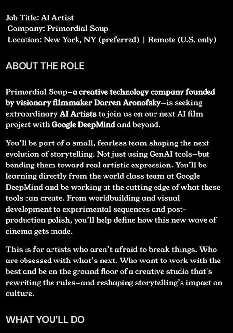 One of the most legendary filmmakers of our time just launched a new AI startup, and the only role they're hiring for is "AI artists who aren’t afraid to break things." You love to see it