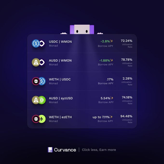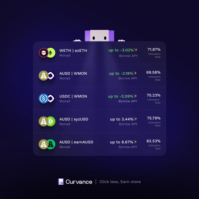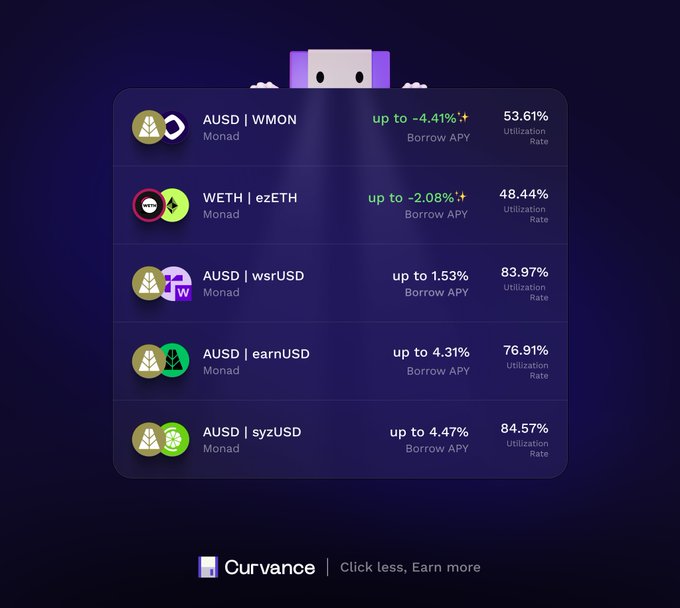 The result? Seamless exposure to Curvance AUSD’s ~10% APY strategy, without needing to understand @monad, actively manage positions, or navigate complex interfaces.
