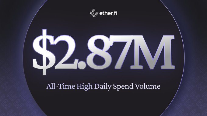 Today, EtherFi Cash hit an all-time high in spend volume. More and more users are choosing EtherFi because Cash makes it easy to grow your crypto and use it in daily life. Thank you for choosing EtherFi. Higher.
