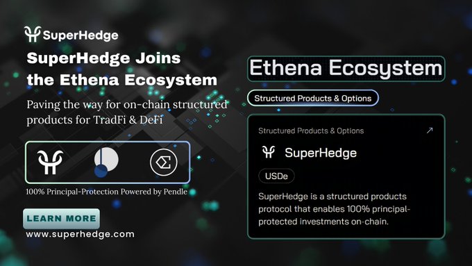 📢 SuperHedge is now officially listed under the Ethena Ecosystem! This is a big step as we continue to grow in the structured products space—especially with Ethena’s upcoming Converge chain designed for institutional DeFi. Our mission? 📈 Bring principal-protected, fixed-yield