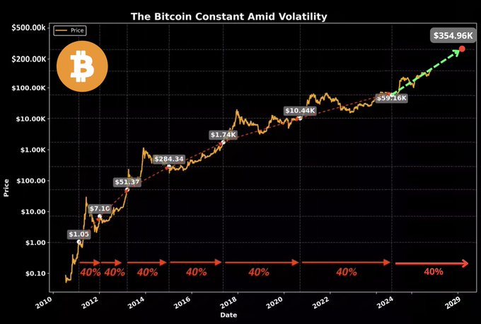 🚨 THE BITCOIN PATTERN NOBODY NOTICED 40% more age = 6x more price Every. Single. Time. If the pattern holds, this points to $350K by 2029.