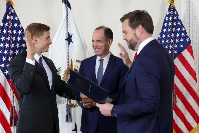 An unforgettable moment being sworn in by Vice President @JDVance alongside my husband, @rabois. VP Vance is a friend and a role model for a generation of patriots who look to the future with excitement and optimism while always putting America First.