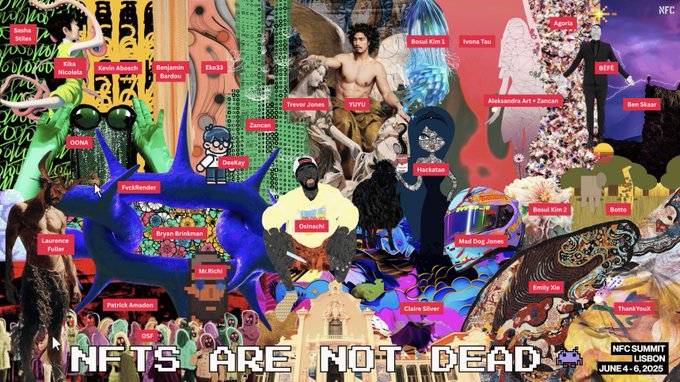 “NFTs Are Not Dead” A collaborative drop by @NFCsummit and 30 artists 💥 Coming to @tezos, May 14th 5pm UTC 4.2 XTZ // Open Edition 150 max per wallet. First 50 collectors to max mint will receive a print signed by several artists ✍️🏆 [1/3]