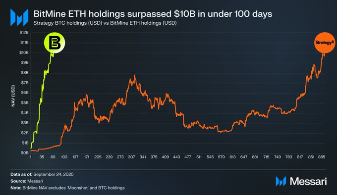 Tom Lee (@fundstrat) is rapidly accumulating $ETH 🏇 $BMNR Ethereum holdings surpassed $10B in just 71 days