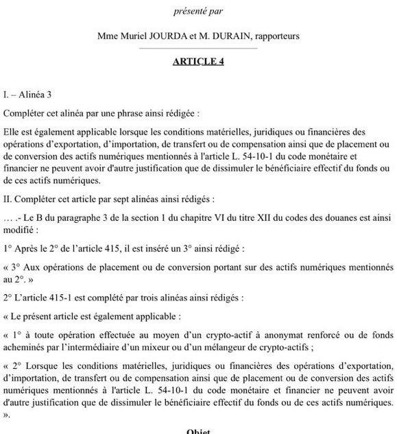 Did France just effectively ban using Bitcoin privacy tools … and Monero!!? “The present article is also applicable: 1° To any operation carried out through a cryptocurrency with enhanced anonymity or funds routed via a mixer or a cryptocurrency mixing service;.. This is why