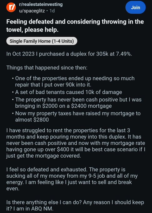 Another example of why you should avoid real estate investing and just buy Bitcoin instead Bitcoin will NEVER need $90K of maintenance and repairs and you'll NEVER need to find tenants