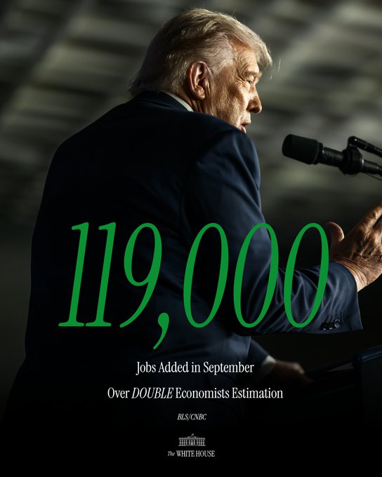 🚨 BREAKING: Thanks to President Trump, the September jobs report CRUSHED economists expectations!