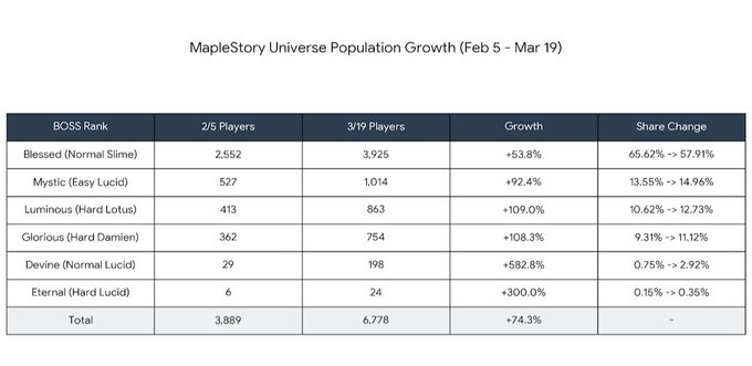 MapleStory Universe Weekly Population Report(Feb 5 - Mar 19):