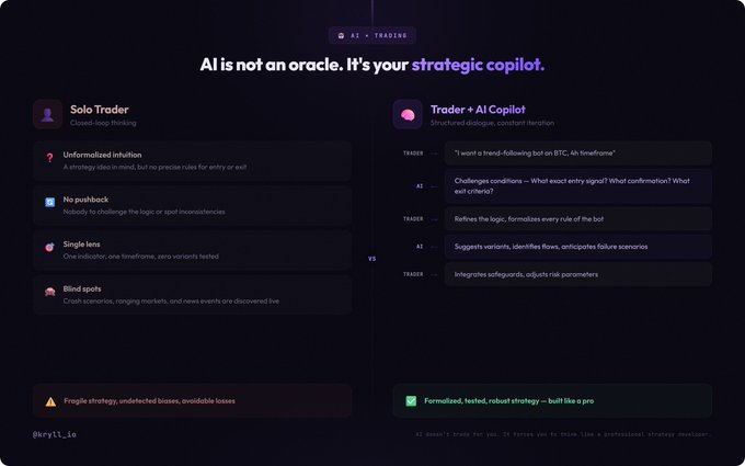 A trader working with AI operates through structured dialogue, every rule defined, every edge case anticipated, every assumption stress-tested.