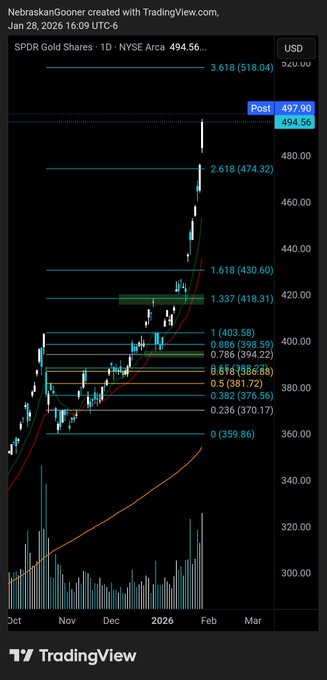 $GLD Did not reject the 1.337 fib. In fact it broke and perfectly retested then sky rocketed afterwards At least TG X provides invalidation levels and still able to take advantage of moves in the opposite direction 🤝 twitter.com/TopGoonX/status/20...