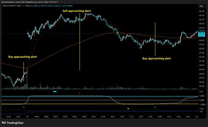 Top Goon X excels during periods of high volume/volatility Notice these 1 minute buy and sell approaching alerts on $SPY and $TSLA Beautiful early warnings for price reversal ✈️