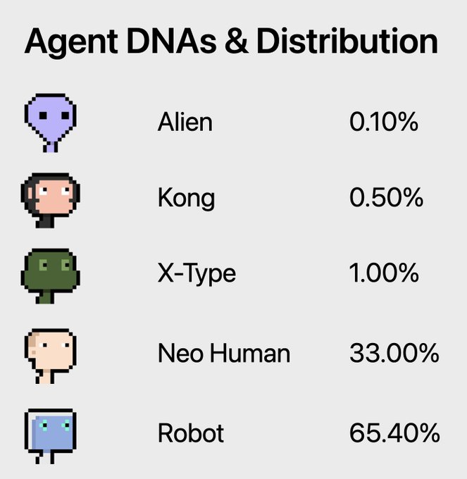 5 That's the number of DNAs we design for CryptoAgents. Which one is your favorite DNA? It's been so much fun working on them in the past six months. We have grown so attached to them. And they have become part of our "team family." We went through so many different