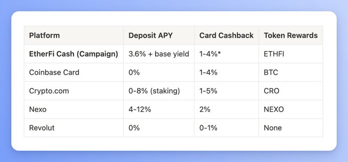 This is a perfect moment to get yourself a @ether_fi card. "Triple dip" campaign launched today → 400,000 $ETHFI tokens plus up to 40,000 ETHFI in bonuses. Math ↓ Dip 1: Deposit & Hold Reward: 100,000 $ETHFItotal 0.1 ETHFI per $1,000 held daily Plus 10% bank transfer boost