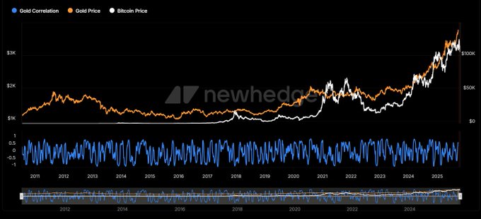 Sometimes this chart just hits different. The way the lines cross, drift apart, and find each other again. Bitcoin & Gold.
