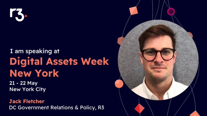 We’re excited that Jack Fletcher, R3’s expert in Government Relations & Policy, will be representing us at Digital Assets Week New York, taking place 21–22 May! Jack will be part of a key roundtable discussion on "The Impact of US Regulatory Changes on Institutional Digital