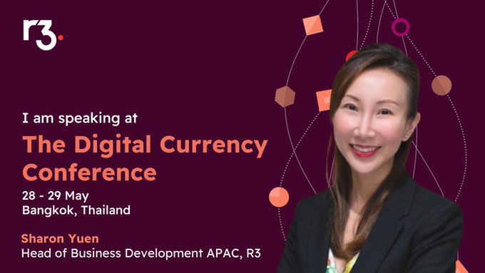 🌏 Later this month in Bangkok! We’re proud to share that Sharon Yuen, R3’s Head of Business Development, APAC, will be speaking across multiple sessions at the Digital Currency Conference from 28–29 May 2025. Sharon will discuss how scalable, interoperable ecosystems can be