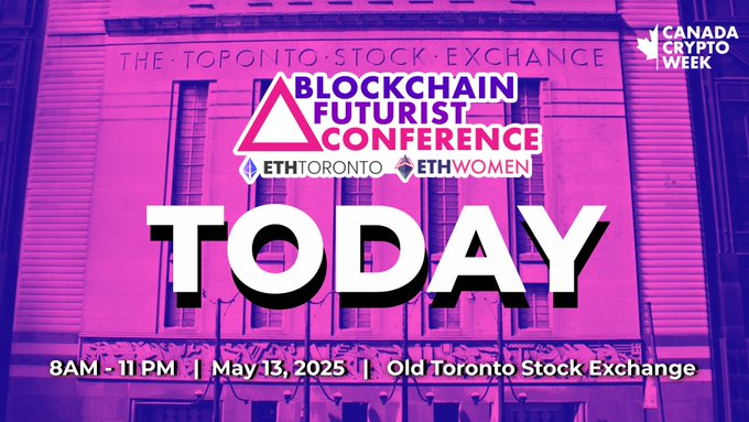 Today’s the day! 🚀 We can’t wait to welcome you to the historic Old Toronto Stock Exchange — now transformed into the future of Web3. Full schedule here: hubs.ly/Q03l_2Gw0 🕗 8 AM – 11 PM Tag us in your posts to get featured! 🔁✨ Get ready for the future! #Futurist25