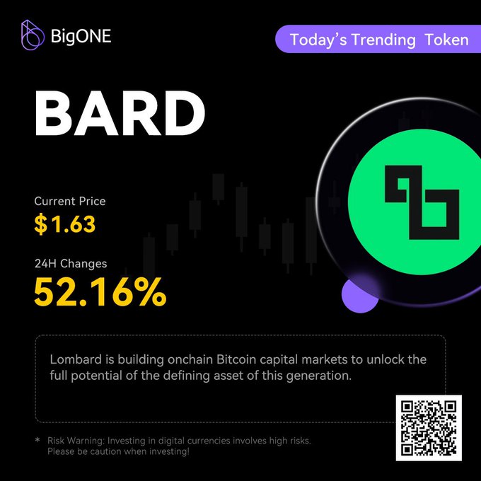 🚀 Discover today’s HOT PICK! $BARD @Lombard_Finance Start exploring today on #BigONE! 📲✨Download the BigONE app, and explore endless crypto opportunities now! #Bitcoin ⛓️http:/big.one/en/downloads