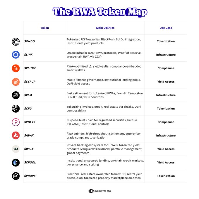 Larry Fink's 2026 annual letter summed up in 3 words. Real. World. Assets. Here's the full RWA landscape ft. $ONDO $LINK $CPOOL and more TL;DR of the Annual Letter 👇 → $150B In Digital Assets Already → BUIDL, World's Largest Tokenized Fund → $65B In Stablecoin Reserves → Digital Wallets Become Investment Portals → Every Asset Gets A Ticker Wall Street didn't adopt the internet in 1996. It's not making that mistake twice.