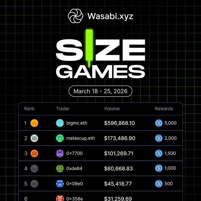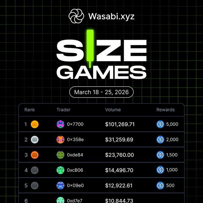 Size Games. Day 1. The #1 rank turned less than $3K into $100K in onchain volume. That's $5K in rewards after 5 trades. Six days left to trade and earn a share of $10K USDC.