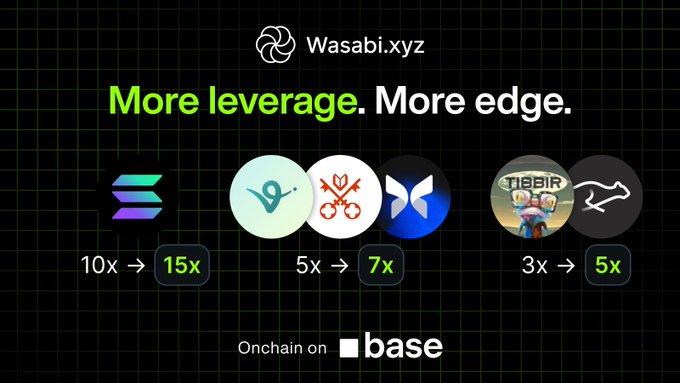 Base Blue Chips just got sized up. 10x → 15x $SOL 5x → 7x $VIRTUAL, $VVV, $MORPHO 3x → 5x $TIBBIR, $KTA What do you want more leverage on next? 👇