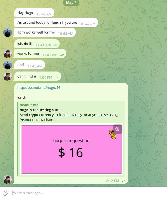 my fav feature we've built in peanut: semantic request links I love dropping these in a chat. Just <domain>/hugo/16 (also works with any non-peanut ens, e.g. /john.eth/16usdc)