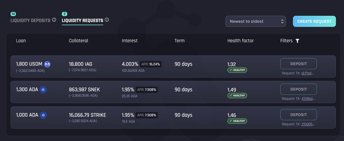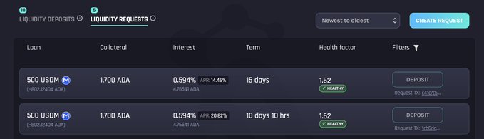 We're seeing more and more variety in loans - not just ADA Check out these short-term USDM loans with great APRs Available at http:/app.aada.finance Take a look and make your stablecoins work for you!