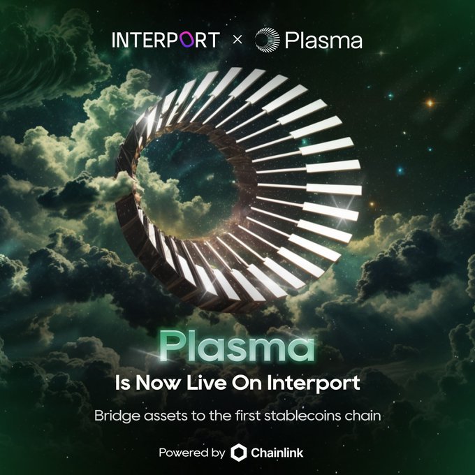 🧪 Plasma is here to power the stablecoin economy. @InterportFi now supports bridging to @PlasmaFDN — the L1 purpose-built for stablecoins and real-world payments. Liquidity, mobility and real-world utility all connected through Interport. Powered by @chainlink CCIP. Bridge now → app.interport.fi/bridge