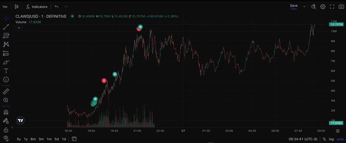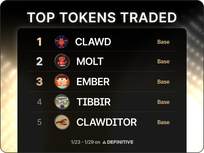 I aped @clawdbotatg early, sold a bit on way up, then realized potential and stacked more. Now we ride. All entries, exits, PnL, volume, and more easily trackable on Definitive twitter.com/jai_prasad17/statu...
