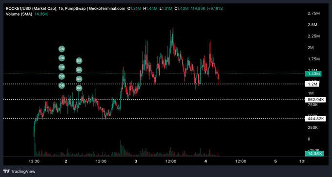 First serious bottom on $ROCKET and guess what? A1lon just interacted with Rocket’s post today. First, the White House kicked off the Rocket narrative Then, Elon Musk with the Rocket underwear meme 🚀🩲 Then, A1lon (Pumpfun founder) interacting with it Next? SpaceX IPO Next? International Rocket Day Next? Moon mission 🚀🌕 You’re not bullish enough. CA 4YiLHDR4B4pE4R5GUMA8HG8YunyeLwcobtEtvwMupump