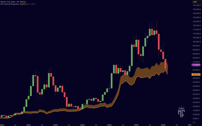 $BTC NEAR COST OF PRODUCTION This is exactly where bottoms form. BIG MOVE IMMINENT!