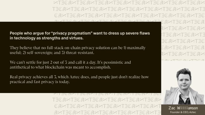 No, you cannot achieve all three properties at the same time. That's the entire point of the onchain privacy trilemma. If there are no retroactive decryption mechanisms or velocity controls, which is Aztec's position based on my understanding, the protocol will empower anyone indiscriminately, including illicit actors, and hence not threat-resistant as defined in the trilemma. More than happy to debate on this @Zac_Aztec. twitter.com/_weidai/status/201...